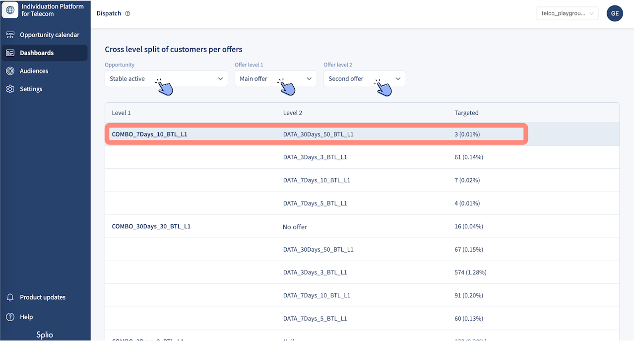 The Dispatch Dashboard has been enhanced with a new analysis axis: Cross level split of customers per offers.