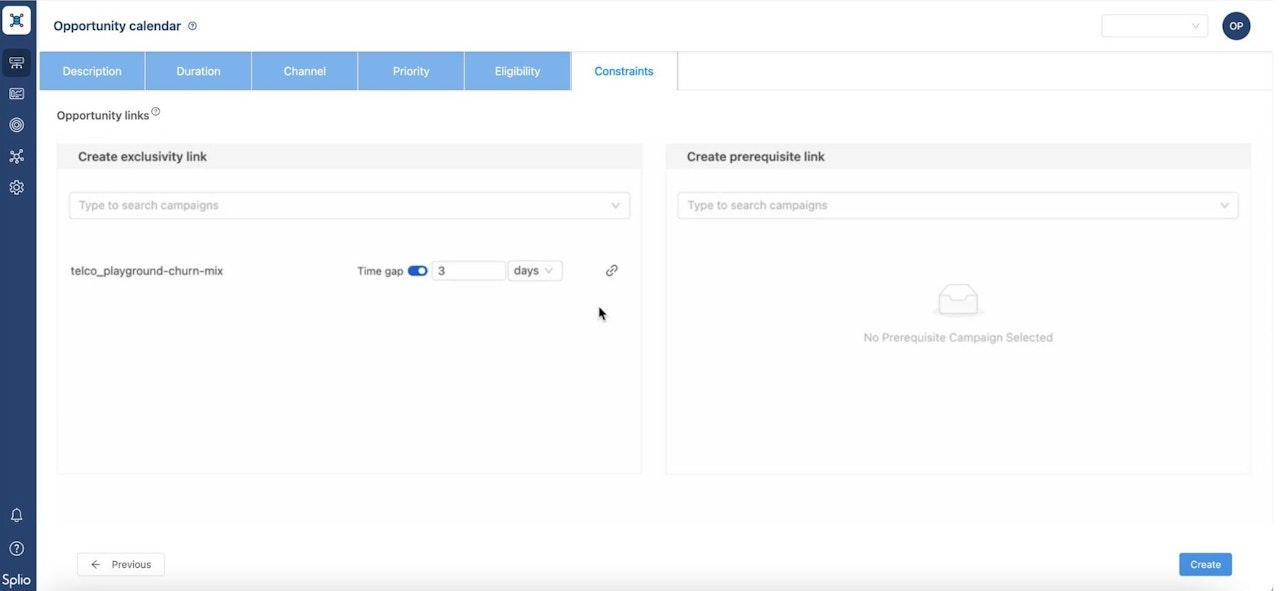 👉 From the Constraints tab, on the left-hand side of the screen, you define the opportunity(ies) you wish to link with an exclusivity link.