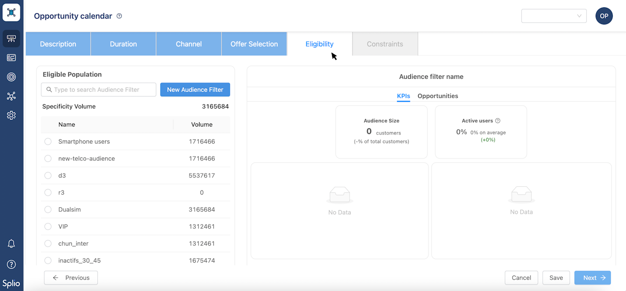 If there are no audience restrictions, you don't need to apply any filters to your opportunity and can skip this step.
